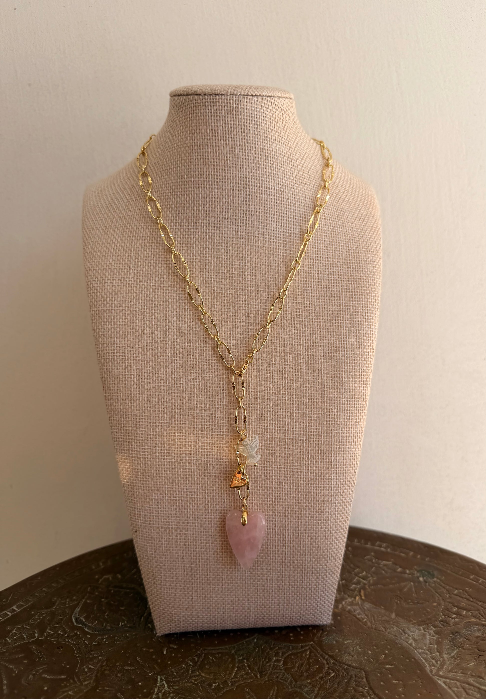 18k gold-filled chain finished with a genuine rose quartz heart drop.